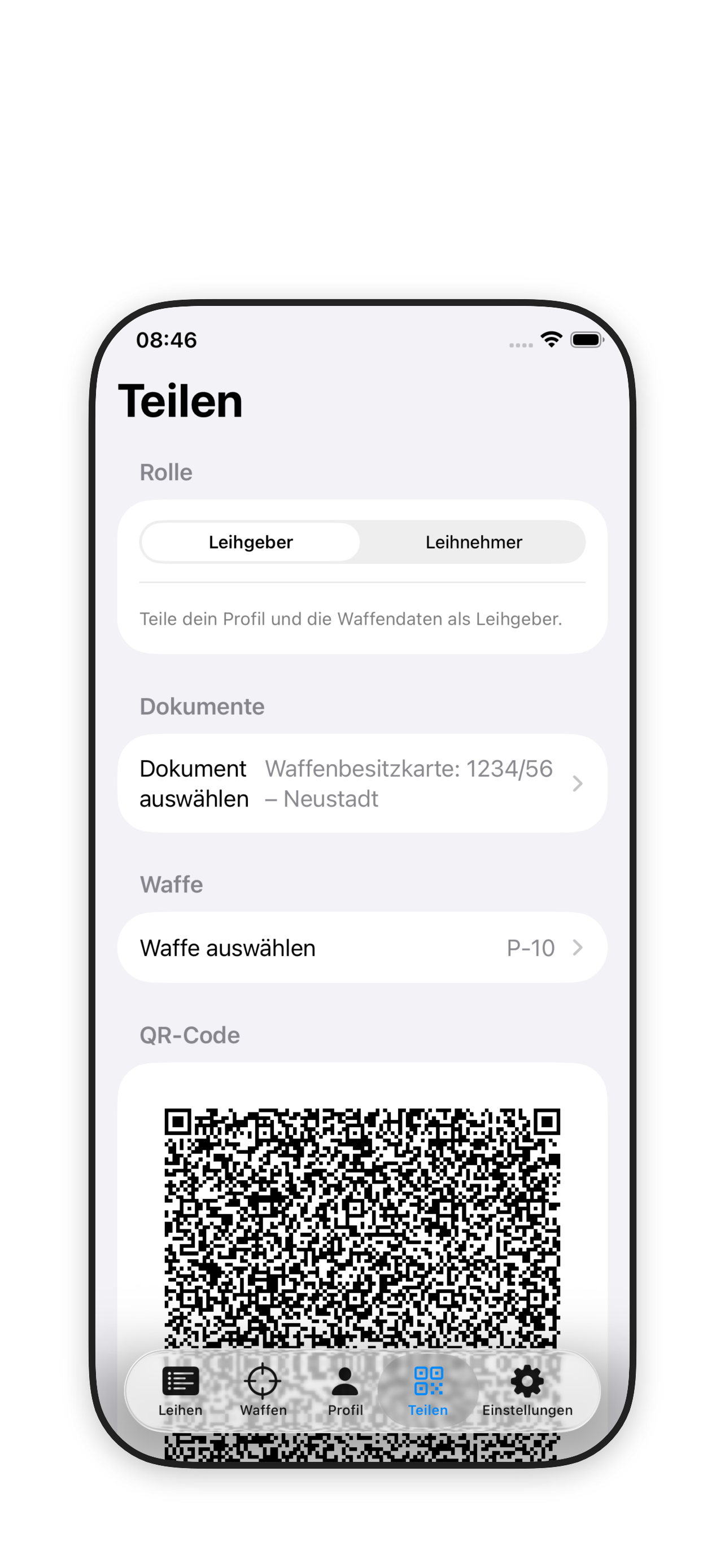 Die App ermöglicht die rechtskonforme Umsetzung der Belegpflicht gemäß § 38 WaffG bei der vorübergehenden Überlassung von Waffen.