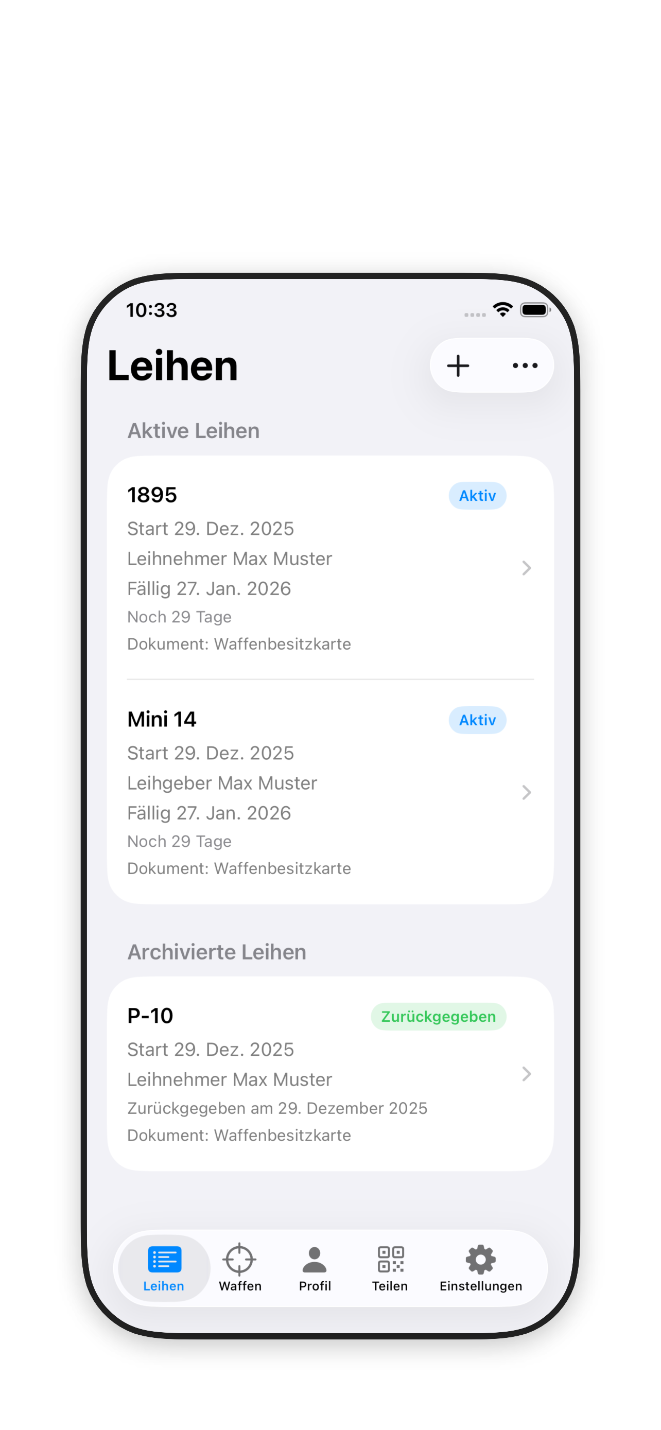 Erstellen Sie rechtskonforme Waffenleihscheine in wenigen Schritten – schneller und weniger fehleranfällig als handschriftliche Papier-Leihscheine.